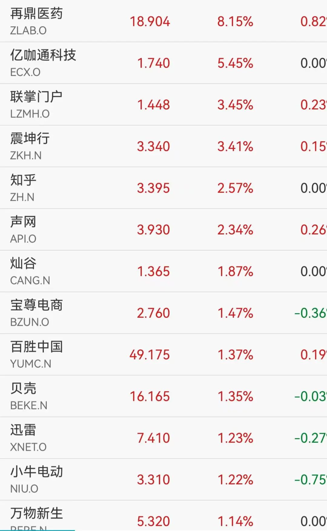 纳斯达克中国金龙指数盘初演出反弹行情,开盘跌0.35%后转涨,戒指发稿涨幅0.11%,再鼎药业涨超8%,知乎涨超2%,小牛电动、迅雷、贝壳涨超1%。