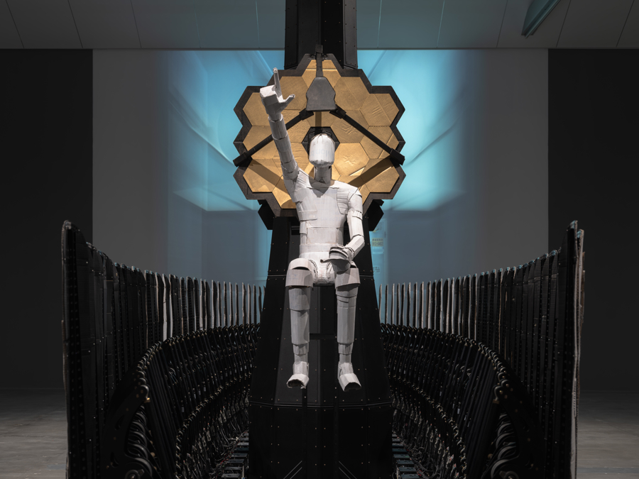 展览的重磅作品《小方舟》是用毁灭纸板箱做的船桨,何况是由精密的编程操作的。展厅中还有一件细腻的永动安装,内部焦虑的竟是一只生计中最常见的塑料袋……此种反差暗喻了郊野村歌式的追问,让不雅者会心一笑。