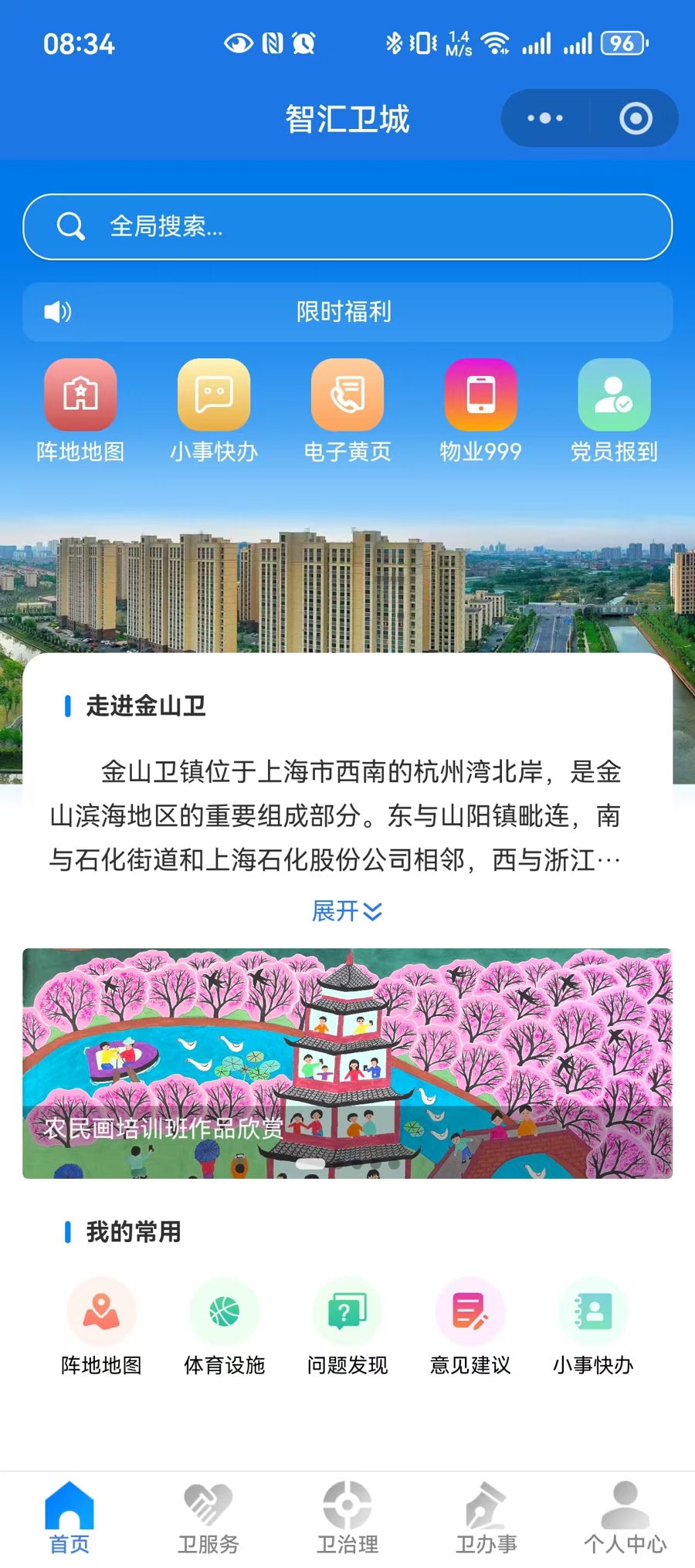 新版界面显豁纯粹,设有“全局搜索”框,方便用户快速查找所需骨子。首页还鸠合展示“阵脚舆图”“小事快办”“电子黄页”“物业999”“党员报到”五大常勤奋能,灭亡诉求反馈、服务查询、热线对接等多种场景。下方则分为“卫服务”“卫束缚”“卫处事”三大中枢板块,共整合143项服务资源,构建起腹地化、全场景的一站式服务体系。